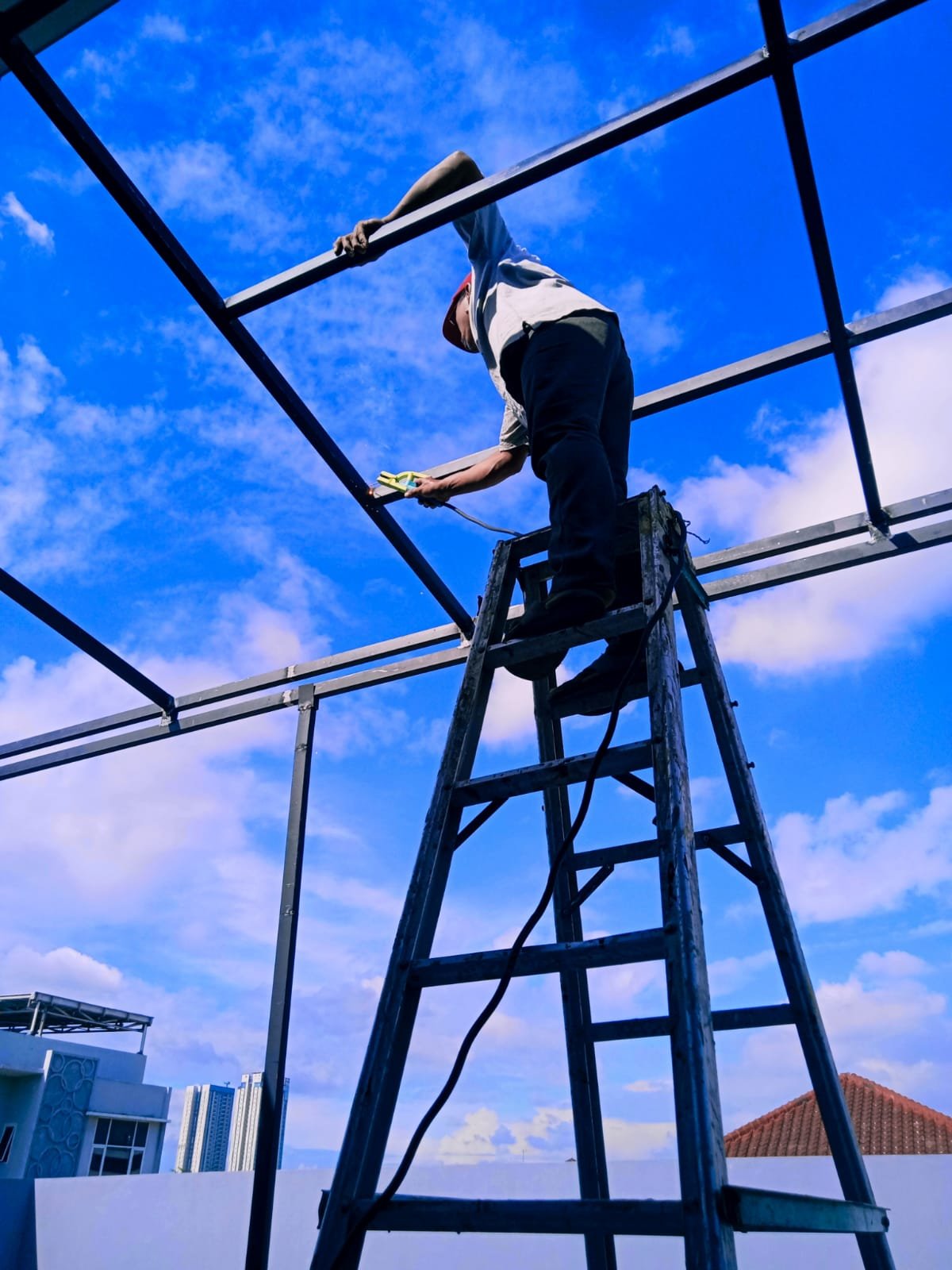 Berbagai Project pengelasan Telah kami kerjakan diberbagai wilayah seperi konstruksi baja, kanopi kain, tenda membrane, pagar, balkon, Teralis, Tangga dan pengelasan baja besi lain nya.